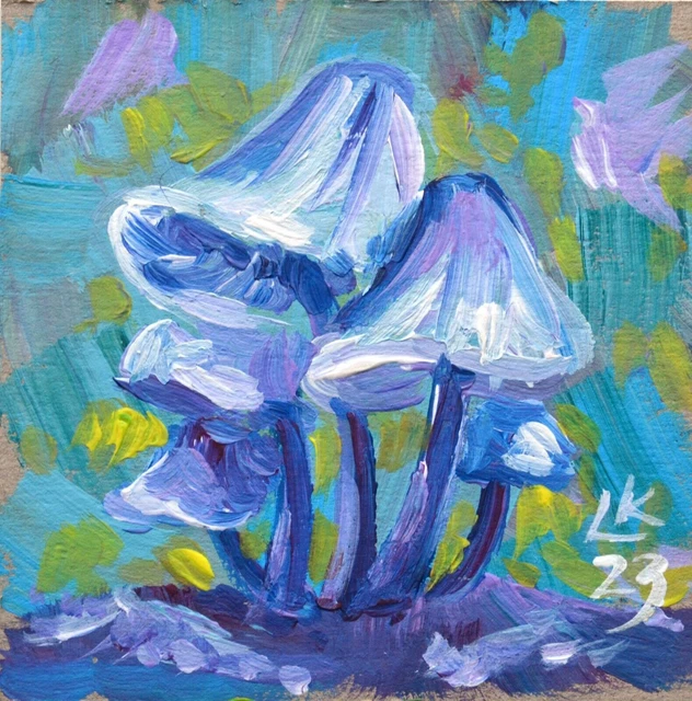 Mushroom Whimsical Original Painting Forest Wall Art 4x4 Artwork Hand Painted 62 10 Picclick Au